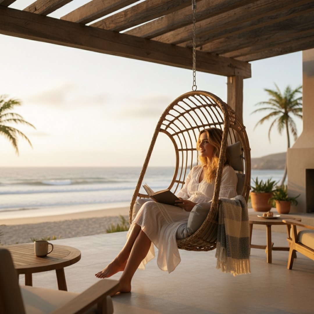 Craviona Hanging Wicker Swing Chair | Comfortable Hammock Seat for Patio & Indoors