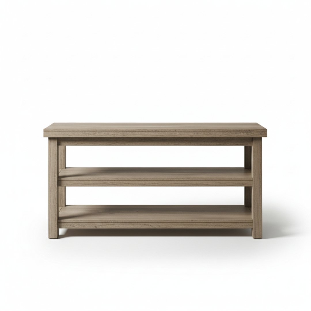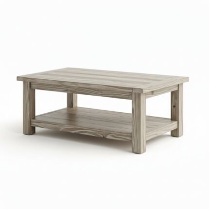 Modern Farmhouse Wood Coffee Table with Storage Shelf | Rustic Center Table