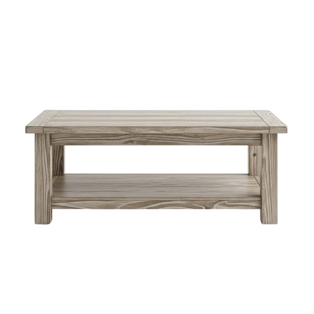 Modern Farmhouse Wood Coffee Table with Storage Shelf | Rustic Center Table